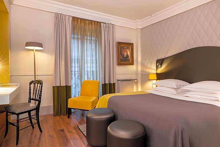 This spacious suite opens onto a private balcony with views of the Avenue de l'Opéra. It includes a separate lounge area, a flat-screen satellite TV and a mini-bar.